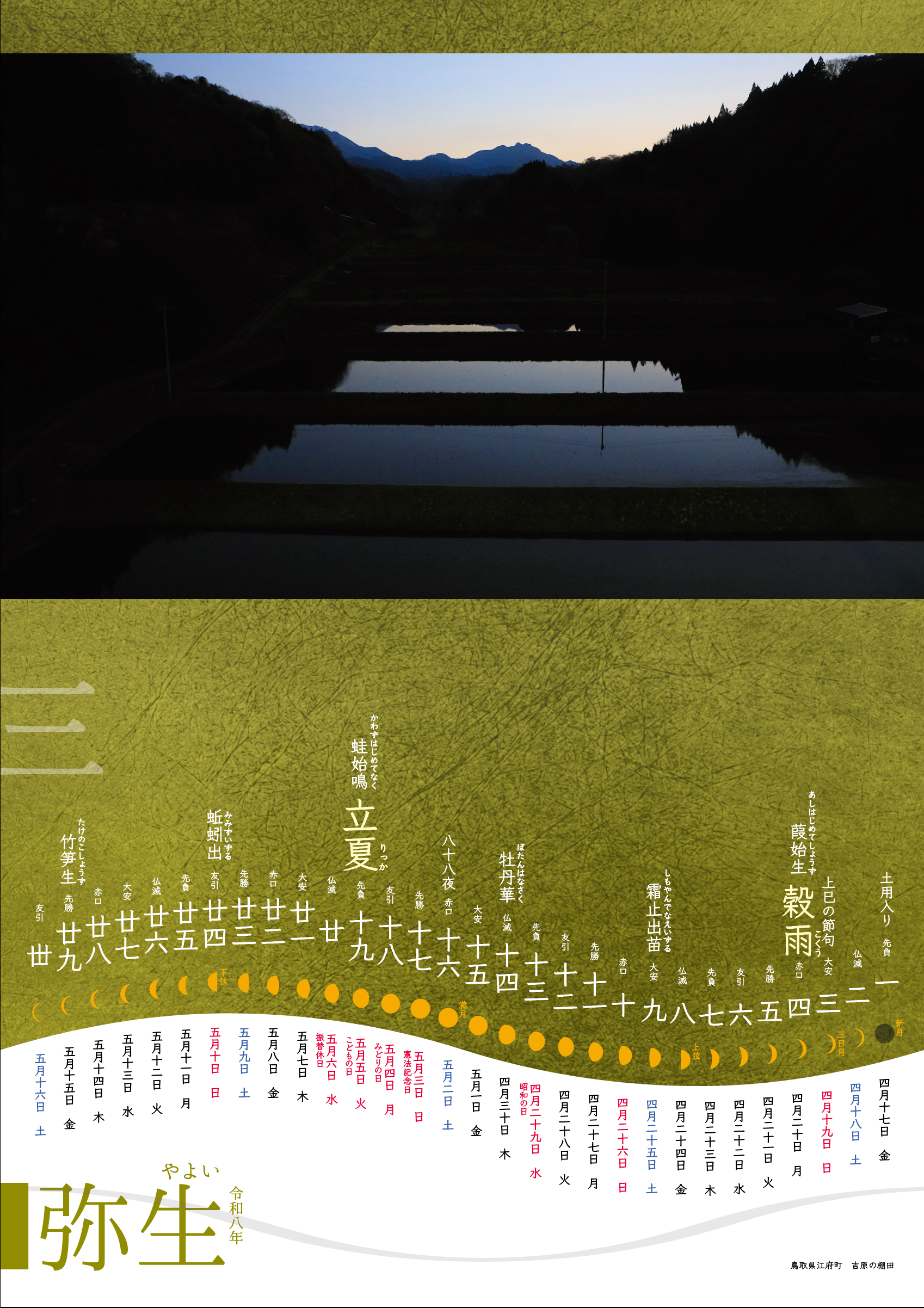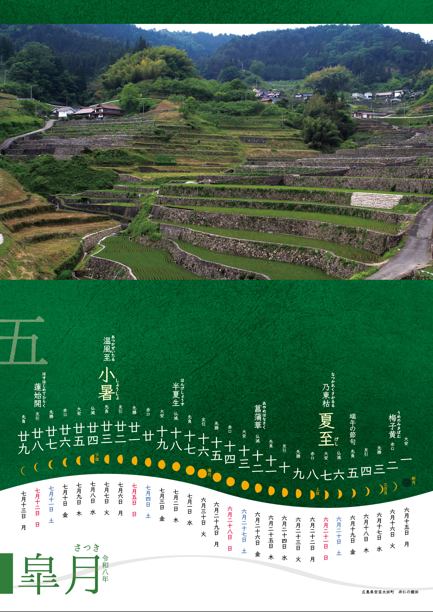 | 令和8年版「旧暦棚田ごよみ」壁掛けタイプ(5部セット) 6,000円(税込) ※送料:200円 |