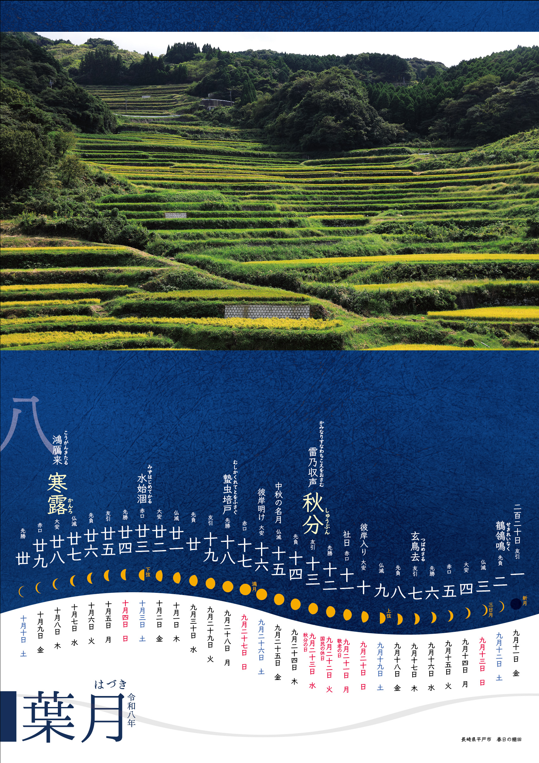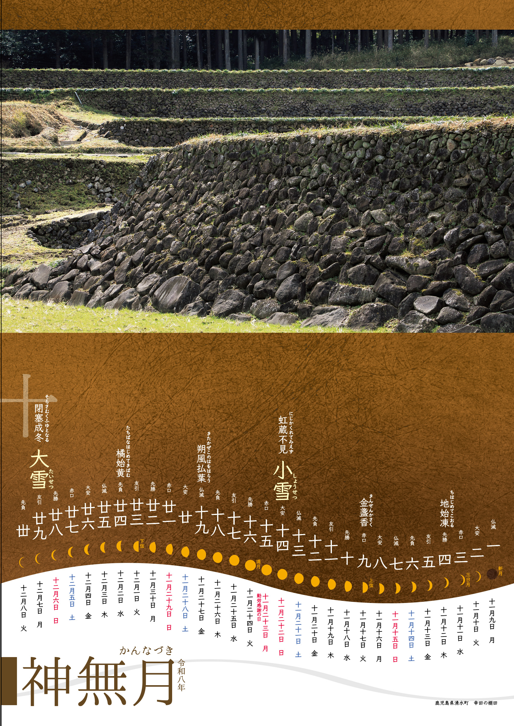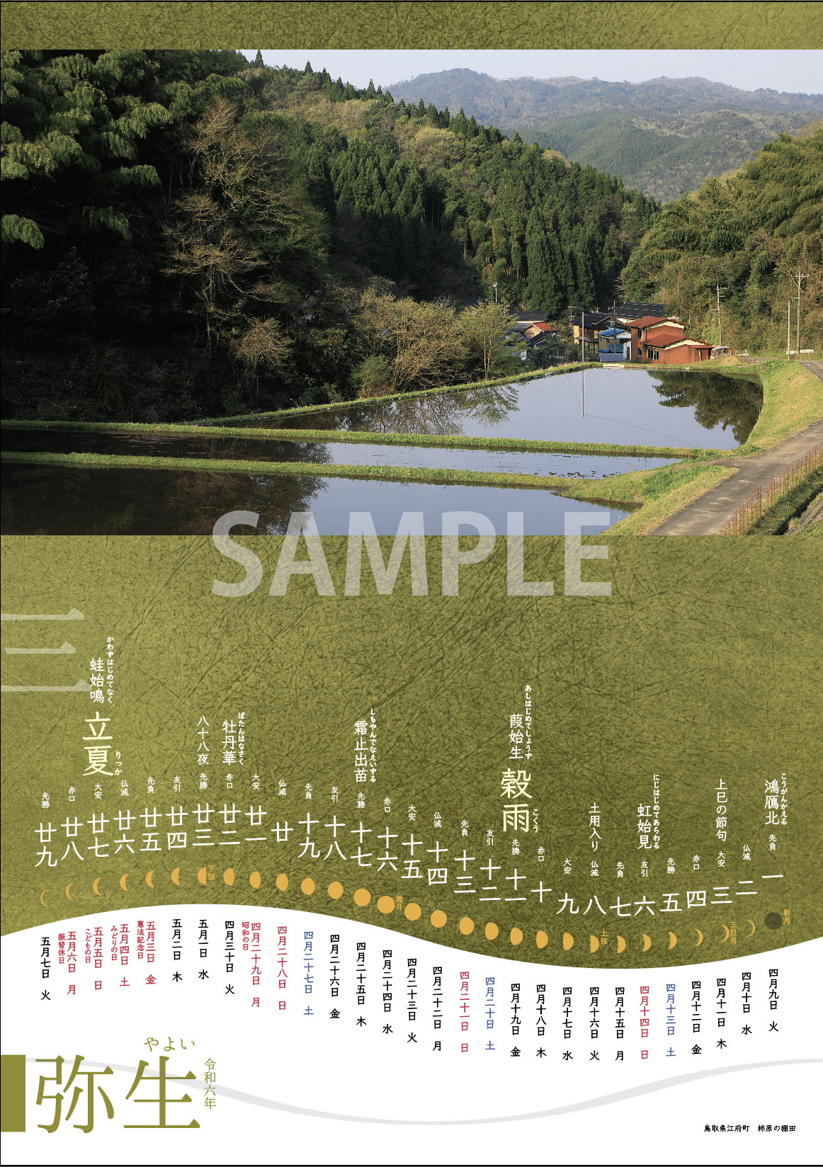 | 令和8年版「旧暦棚田ごよみ」壁掛けタイプ(5部セット) 6,000円(税込) ※送料:200円 |