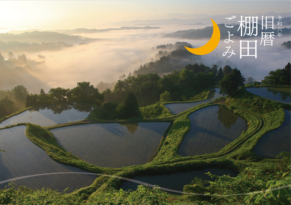 「旧暦」とは、明治五年まで日本で使われ続けてきた、月の満ち欠けを1ヶ月とした、太陰太陽暦のカレンダーです。 「棚田ごよみ」は、旧暦表示を基本とした本当の旧暦ごよみです。四季折々の棚田風景と月の満ち欠け・二十四節気・七十二候・雑節まで記載しています。